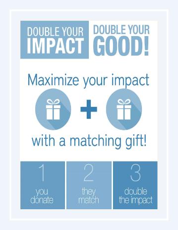 One donation. Double the impact at no extra cost. Many U.S. employers match charitable donations. An employer matching gift is a program where a company matches an employee’s charitable donation to a qualified nonprofit, doubling, or sometimes tripling, the value of the original gift.